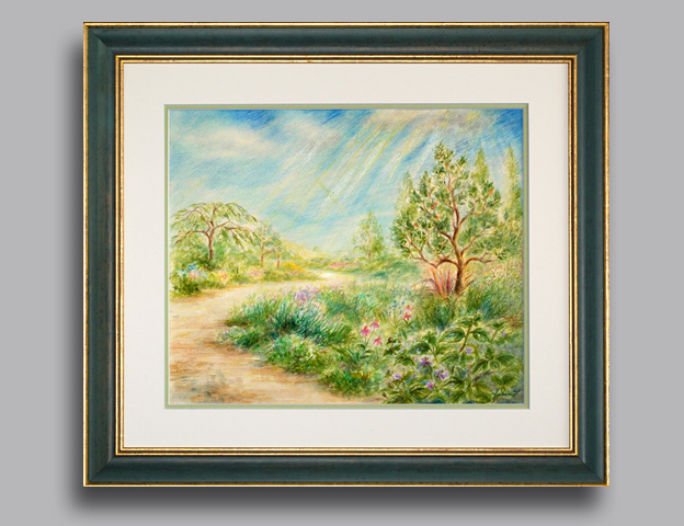 ご夫妻が作られていた、あの美しい花園を思い出して感謝をのせて色を重ねていきました。