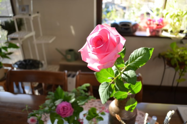 友人からピンクのバラをいただきました。